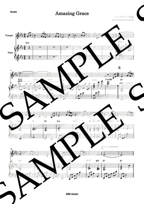 こちらの譜面はトランペットやフリューゲルホルンでじっくりと歌い上げるために、教会のような響きの中での演奏をイメージして作成しました。